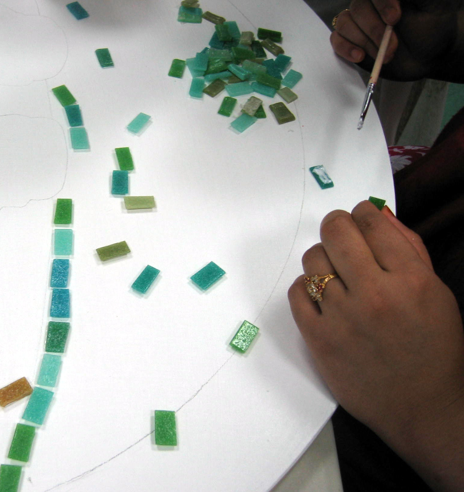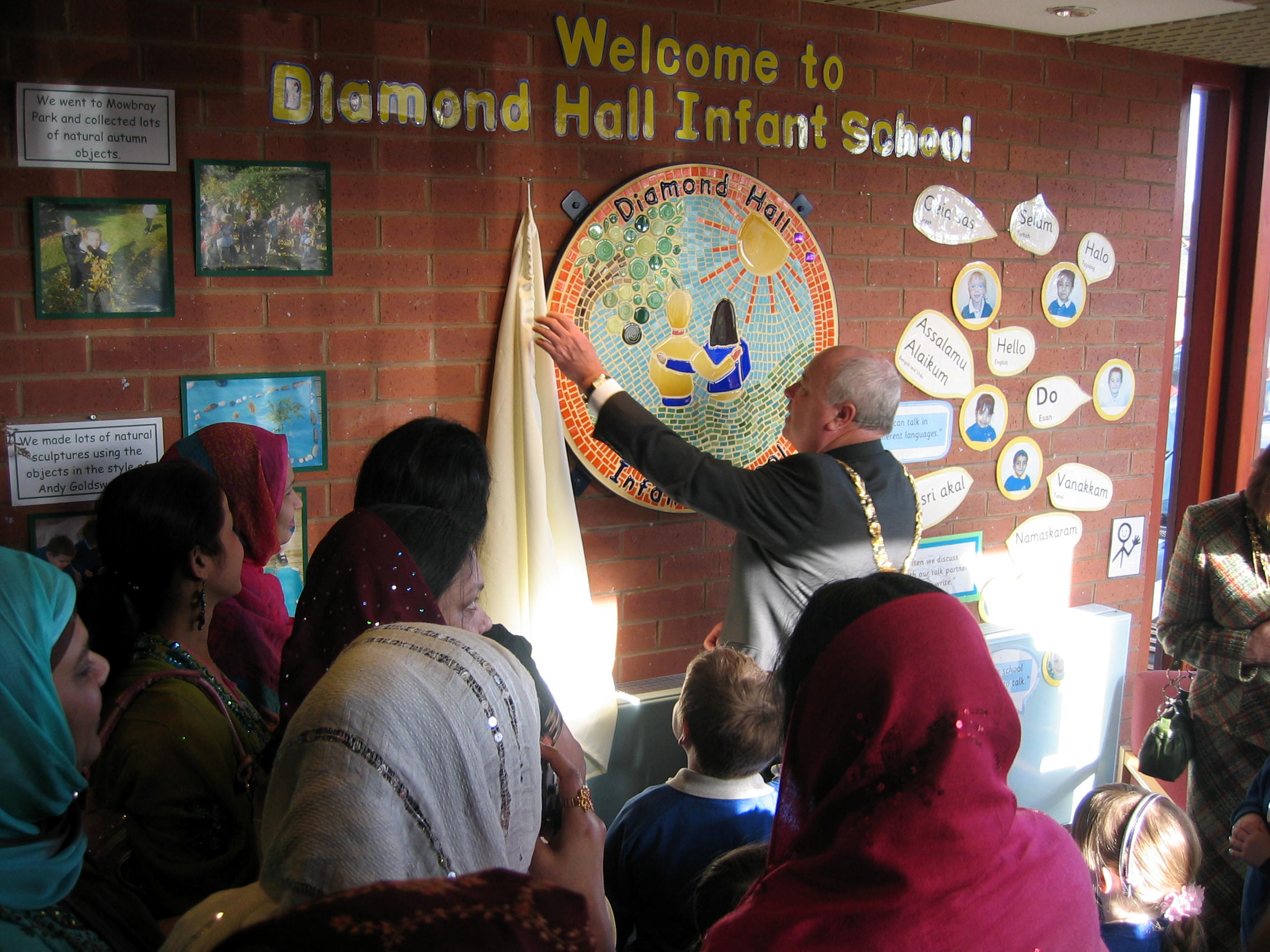A group of 7 women, from the Srijoni Women’s Group worked with local artists over 3 months participating in a range of arts activities including jewelery workshops at the National Glass Centre. They designed and created a mosaic wall plaque of the Diamond Hall Infant School Logo. The project created an opportunity for the women to develop textile skills and exhibit their work to an open audience, the wellbeing aims of the project succeeded in increasing confidence and reducing a sense of isolation.